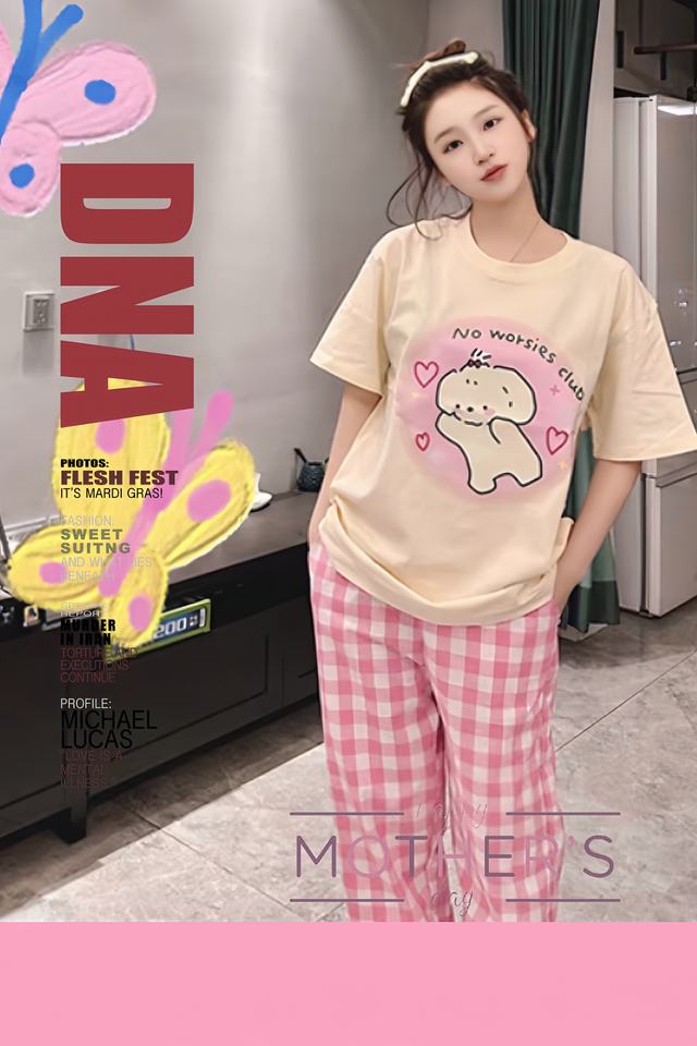 ชุดนอนสำหรับเด็กผู้หญิงใส่ในฤดูร้อนกางเกงคัสตาร์ดตัวยาวสั้นกางเกงลายสก๊อตสีชมพูลายลูกสุนัขน่ารักน่ารัก