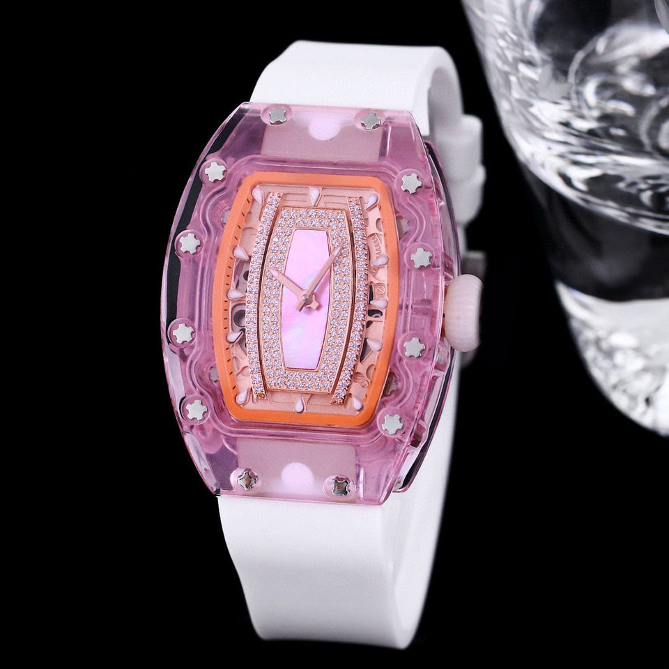 นาฬิกาข้อมือคริสตัลสีชมพูสำหรับผู้หญิง ประดับเพชรสวยงาม กันน้ำ ระบบตูร์บิญอง เหมาะสำหรับงานปาร์ตี้ ถ่ายรูป