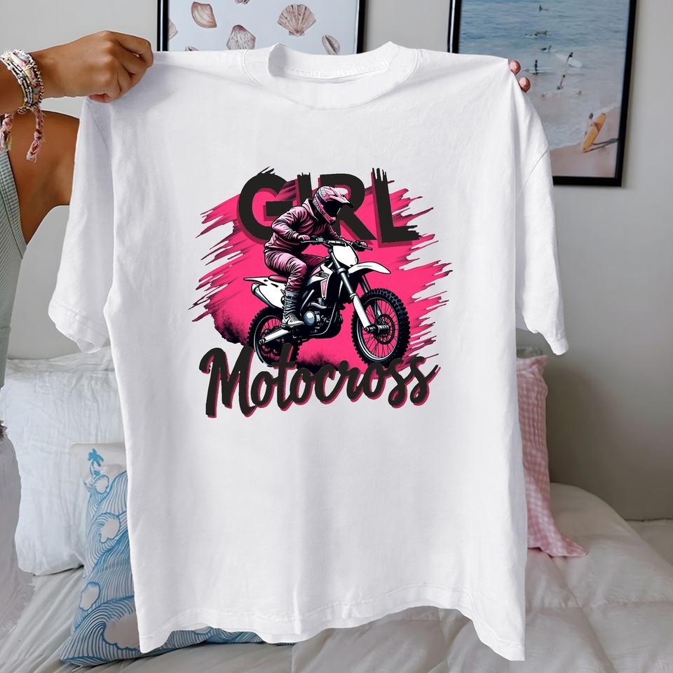 เสื้อยืดผ้าฝ้ายแท้สำหรับผู้หญิงใส่สบายสำหรับขี่มอเตอร์ไซค์วิบาก