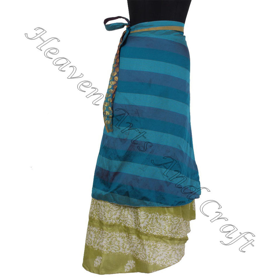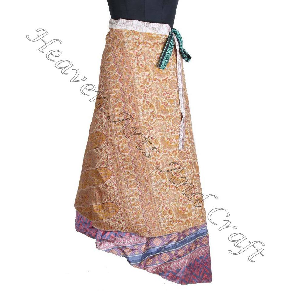 Girl's 2 Layer Wrap Around Hippie Silk Long Skirt Party Wear 2 Layer Around Hippie Long Indian Silk Sari Wrap Skirt Manufacturer