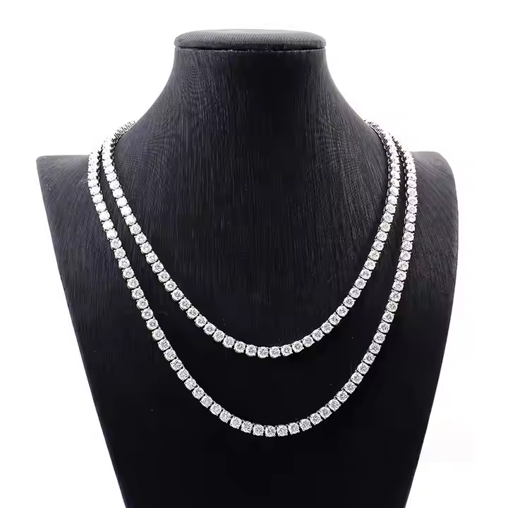 สร้อยคอเพชรโมอิสซาไนต์และเพชรเลี้ยงในห้องปฏิบัติการแบบ Cuban Chain สำหรับผู้หญิง น้ำหนัก 15 กะรัต ความใส VVS ปรับแต่งสีโลหะได้