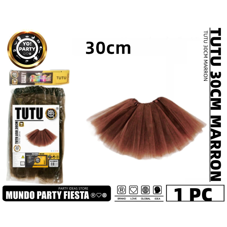 Girl's Brown Tulle Pleat Skirt with Empire Waistline Breathable Fabric Belt Decoration Print for Parties-30cm Short Length