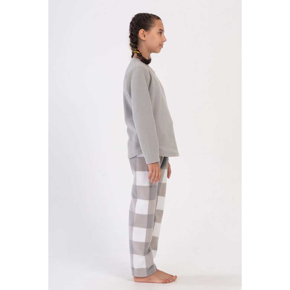 Girl's Long-Sleeve Oval Skirt Pajama Set Plaid Print 100% Cotton Fleece Collar for Autumn Nightwear Sizes 9-10/15-16