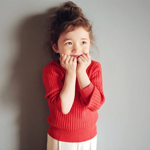 เสื้อสเวตเตอร์สต็อกทรงเข้ารูป ลายทางสีเดียว ดีไซน์ใหม่สำหรับเด็กผู้หญิง