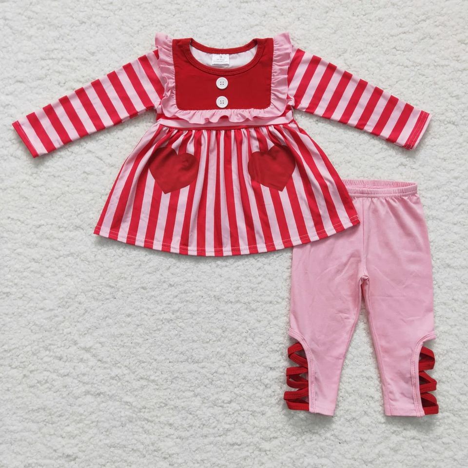 ชุดสูทลำลองลายทางสีชมพูสำหรับวันวาเลนไทน์ของเด็กผู้หญิงสำหรับฤดูใบไม้ผลิและฤดูร้อน