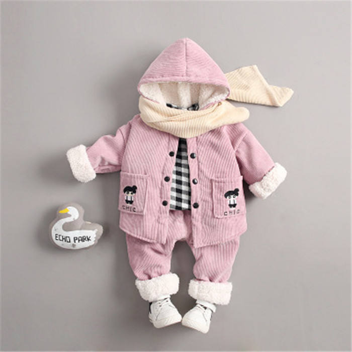 ชุดเสื้อผ้าเด็กผู้หญิง 3 ชิ้น ชุดเสื้อโค้ทฤดูหนาว เสื้อยืดเด็กเรียบง่าย เสื้อแจ็คเก็ตขนสัตว์เด็ก ขายส่งจากจีน