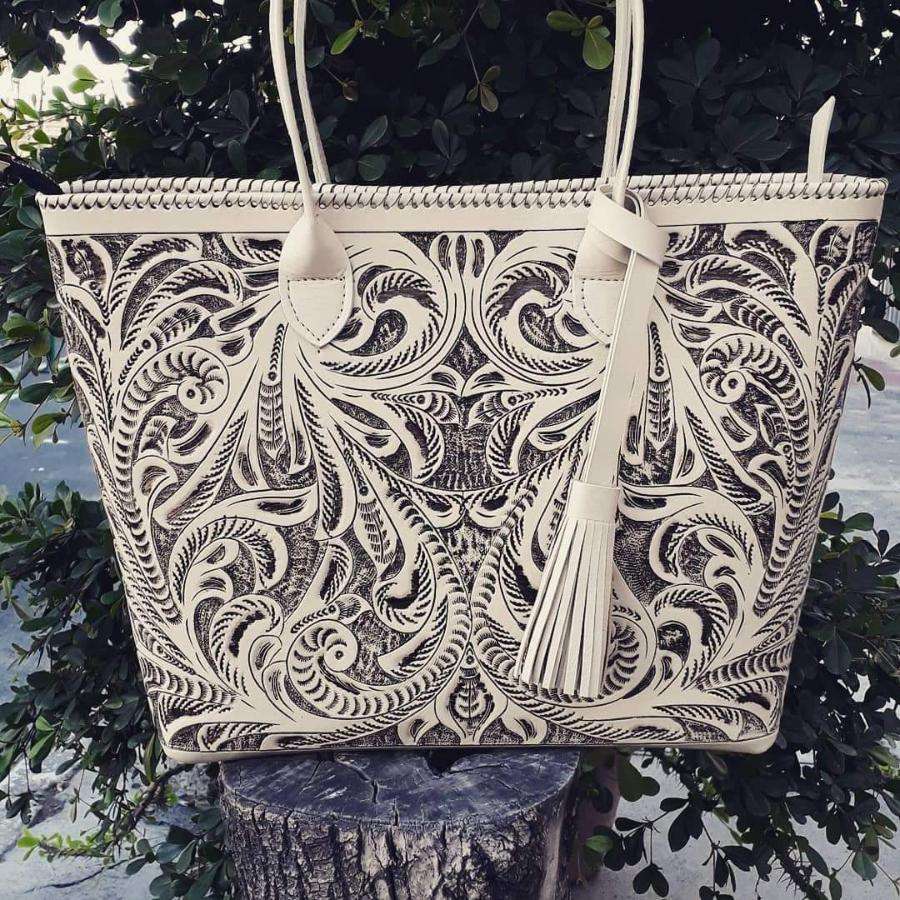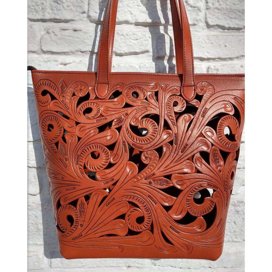 Girls Anniversary Gift Ideas Genuine Leather Custom Handbags Large Capacity Zipper Closure Engrave Design Vintage Style