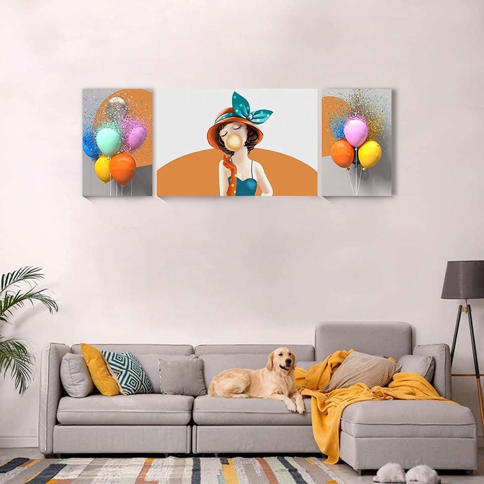ของตกแต่งผนังห้องนอนเด็กผู้หญิงสำหรับห้องเด็ก ภาพการ์ตูนลูกโป่งสำหรับห้องเด็ก งานศิลปะติดผนังน่ารักสำหรับห้องเด็กอ่อน