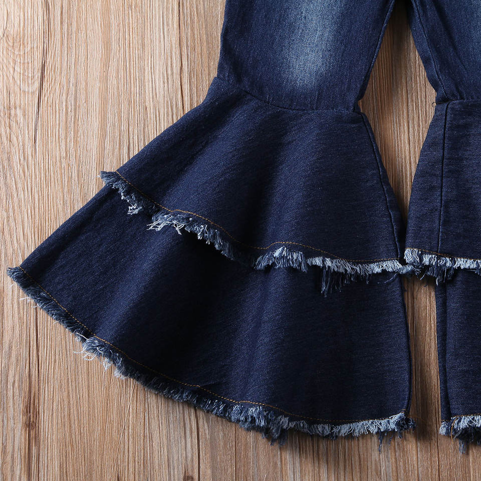 กางเกงยีนส์ขาบานสำหรับเด็กผู้หญิงกางเกงขาบานเอวสูงระบายอากาศสีฟ้า