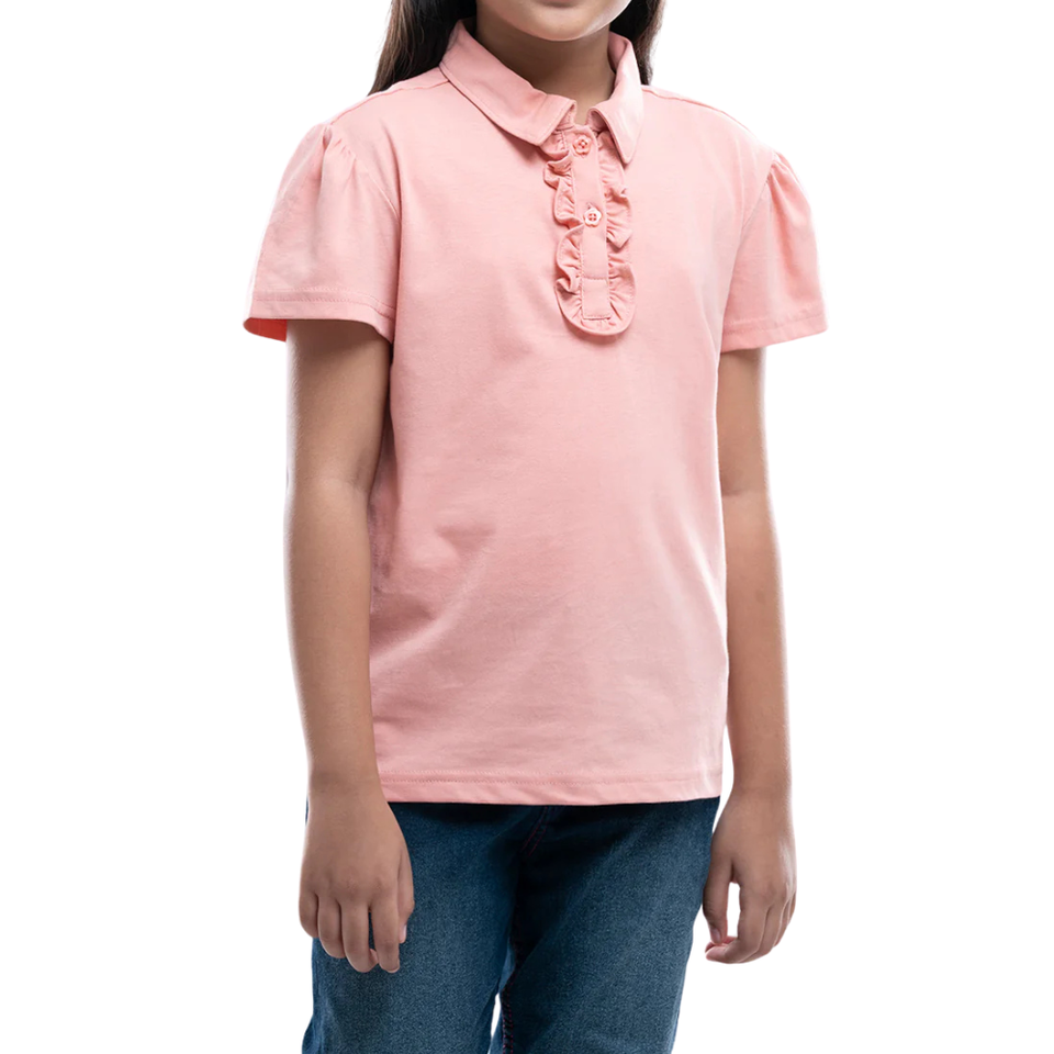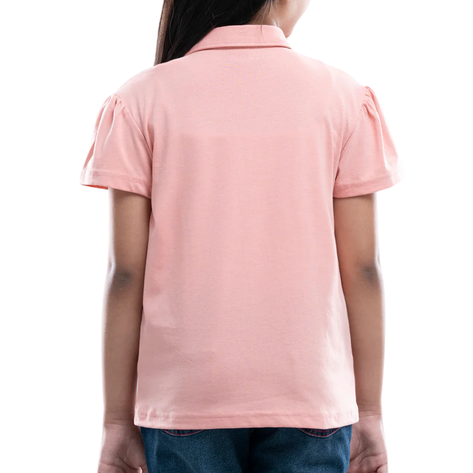 เสื้อโปโลเด็กผู้หญิง แขนพองสั้น ผ้าถักปักลาย สีชมพูอ่อน แบบคลาสสิก คอปกโปโล ขายส่ง ปรับแต่งได้