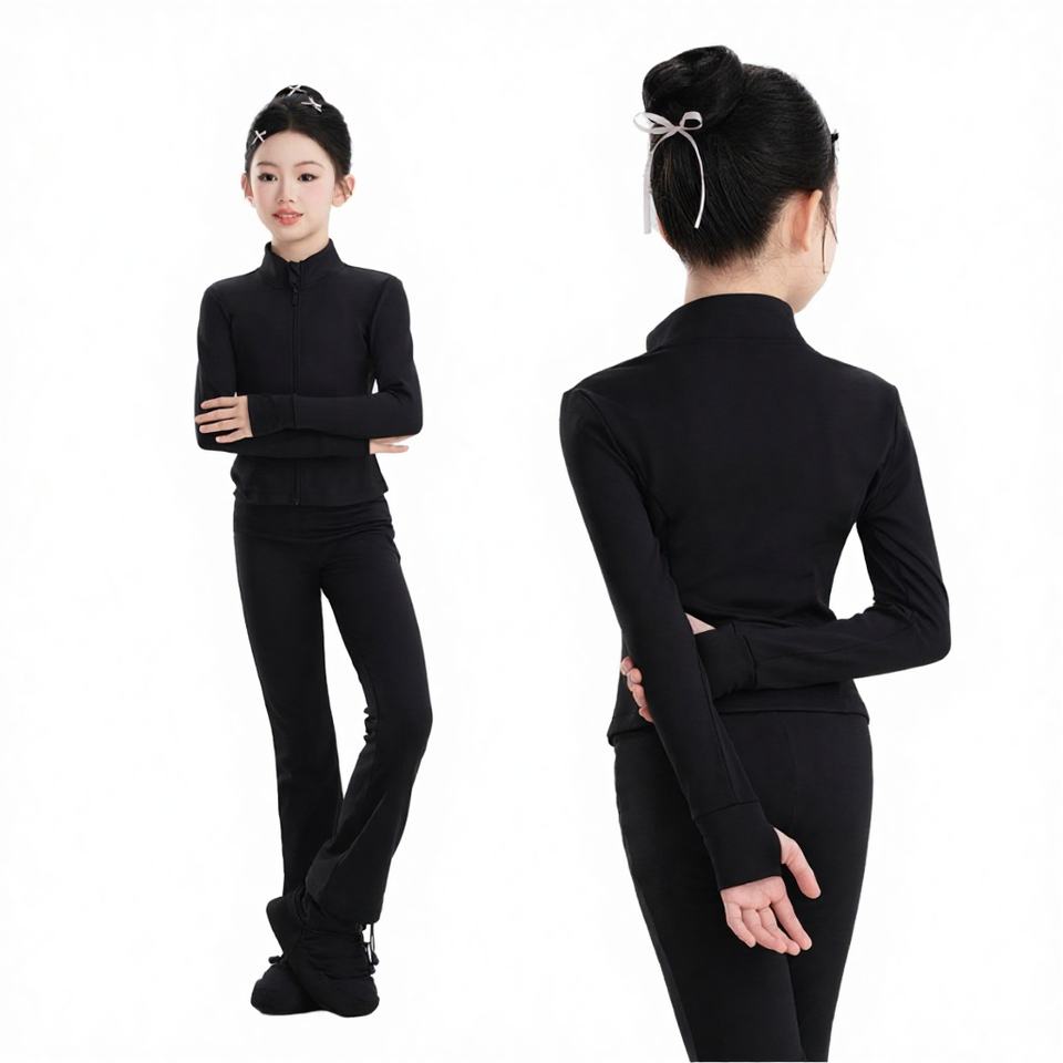ชุดโยคะเด็กผู้หญิง 2 ชิ้น ผ้ากำมะหยี่ผสมสแปนเด็กซ์ กางเกงเลกกิ้งและเสื้อแจ็คเก็ต สำหรับออกกำลังกาย