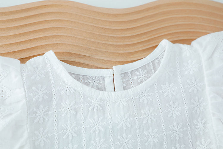 ชุดลำลองฤดูร้อนสำหรับเด็กผู้หญิง เสื้อยืดแขนกลีบดอกไม้ผ้าฝ้าย+กางเกงขาสั้น ชุด 2 ชิ้น เสื้อผ้าเด็ก ชุดเด็ก