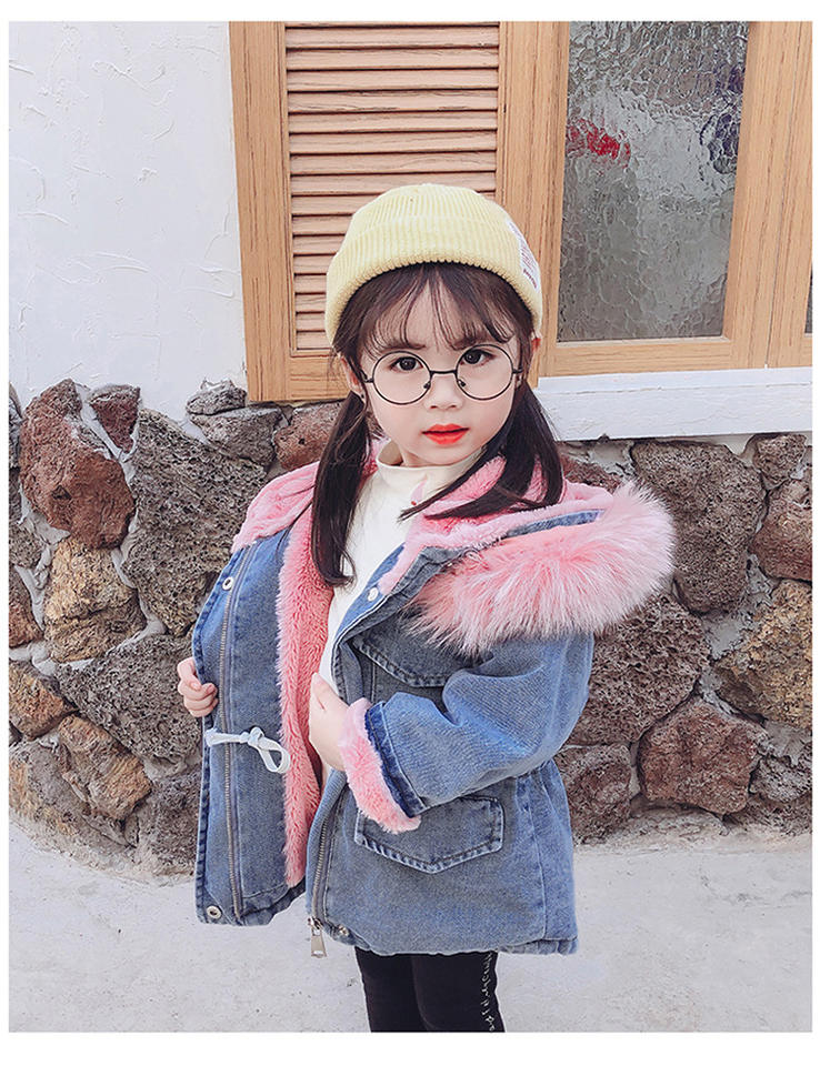 Girls Clothing Baby Coats for Girls Fur Collar Jackets for Winter Autumn Kids Clothes Plus Velvet Thick Denim Children Outerwear