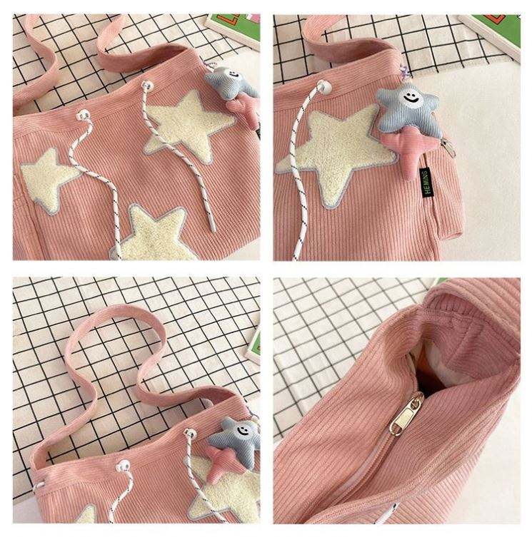 กระเป๋าสะพายไหล่ผ้าใบพิมพ์ลายดาวน่ารักสำหรับสาวๆแฟชั่นแบบลำลองสไตล์ญี่ปุ่น