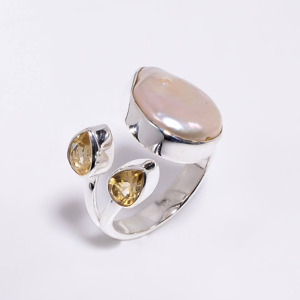 925อัญมณีไข่มุกบาร็อคซิทรีนลูกแพร์แฟชั่นสำหรับเด็กผู้หญิงแหวนเงินสเตอร์ลิงขนาดเราปรับ6.5ได้เครื่องประดับเงินทำมือ