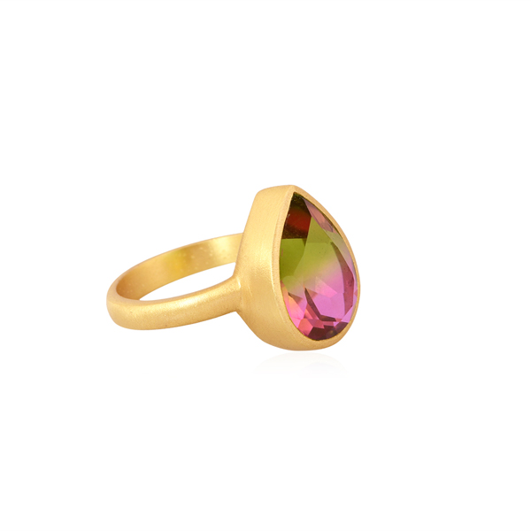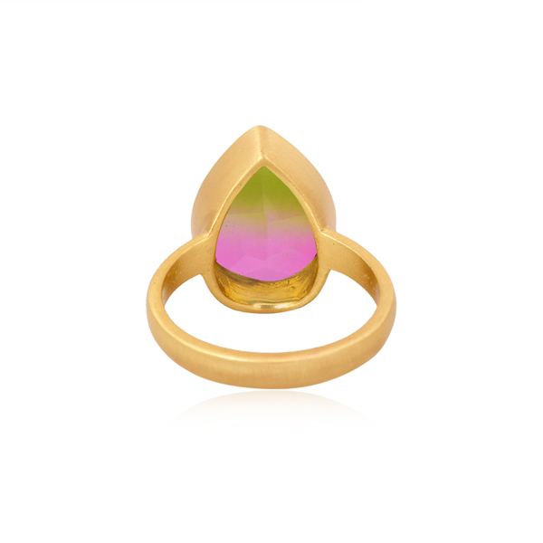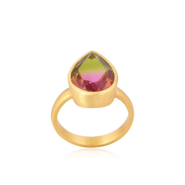 Girls Fashion Statement Ring 18k Gold Plated Brass Jewelry Wholesale Bio Watermelon Doublet Quartz Gemstone Ring for Women