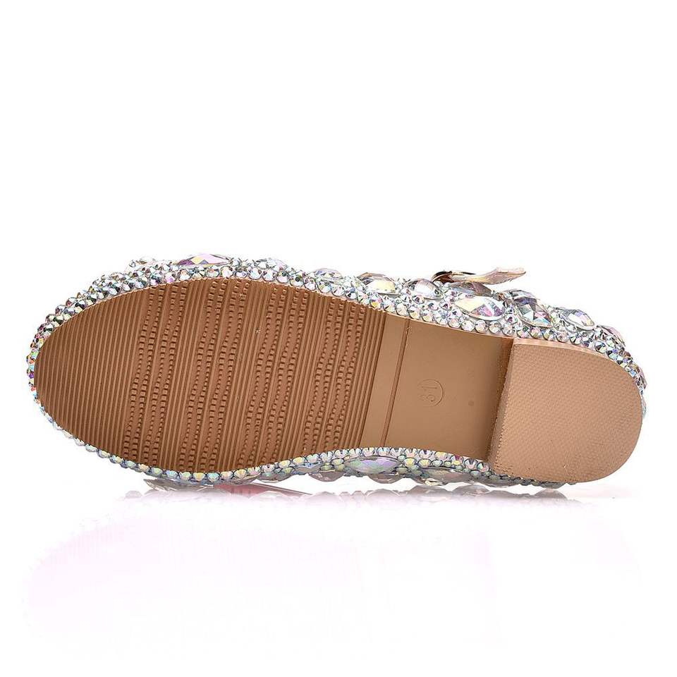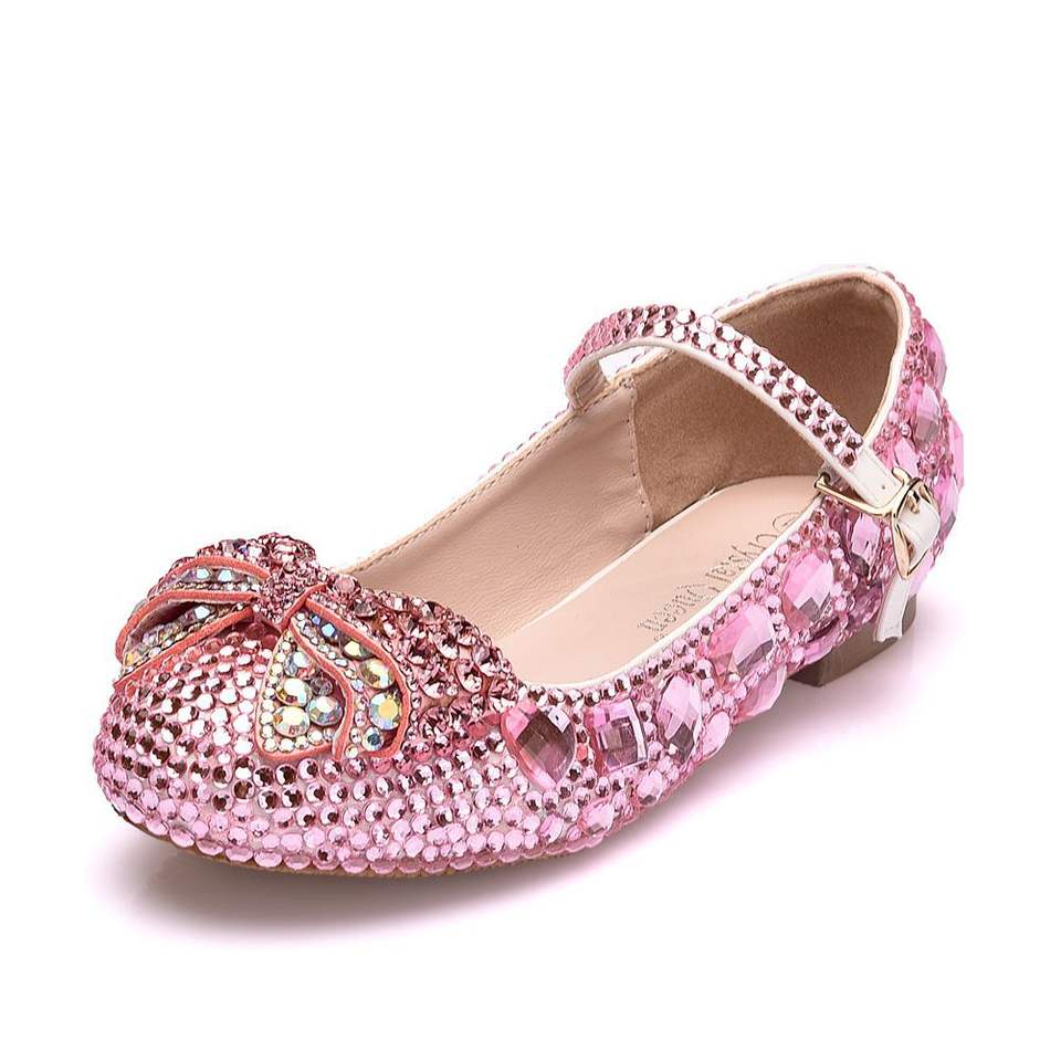 Girls' Flat Shoes with Bowknot Round-Toe Dress Shoes Children Diamond Wedding Shoes for Performance Show