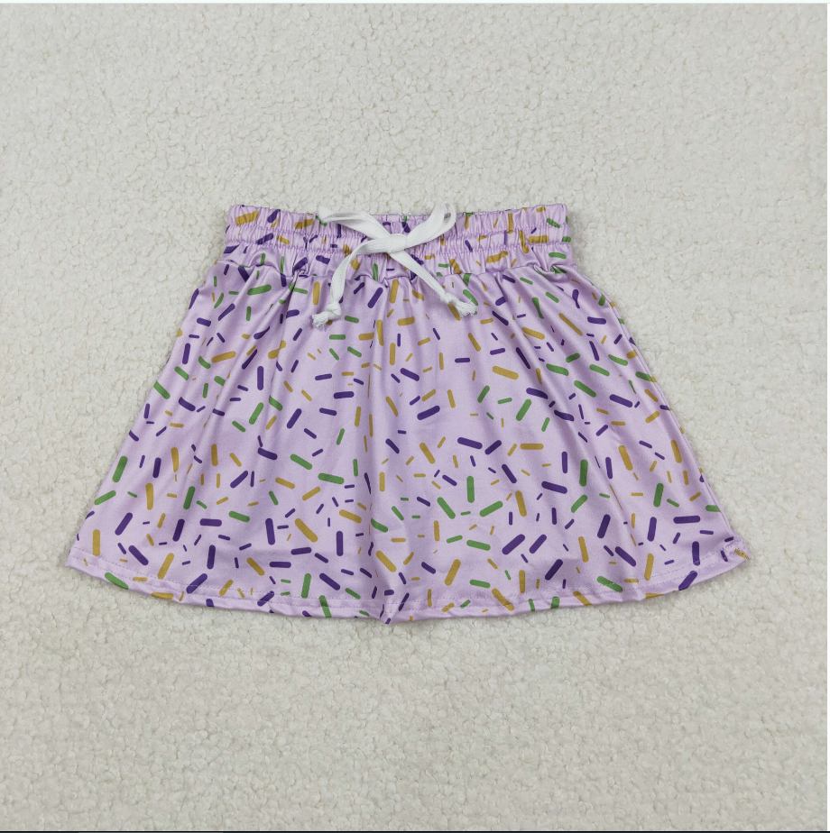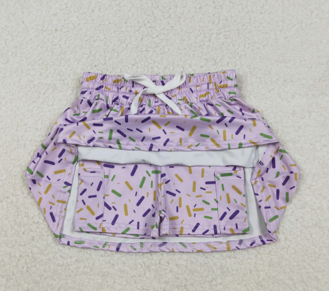 ชุดกระโปรงกางเกงขาสั้นลายสปริงเคิลส์สีม่วงสำหรับเด็กผู้หญิง รุ่น GLK0144 สำหรับงานมาร์ดิกราส์