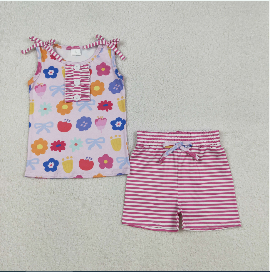 ชุดเสื้อผ้าเด็กผู้หญิง GSSO2830 กางเกงขาสั้นลายดอกไม้สีสันสดใสสำหรับเด็กผู้หญิงชุดเสื้อผ้าฤดูร้อน