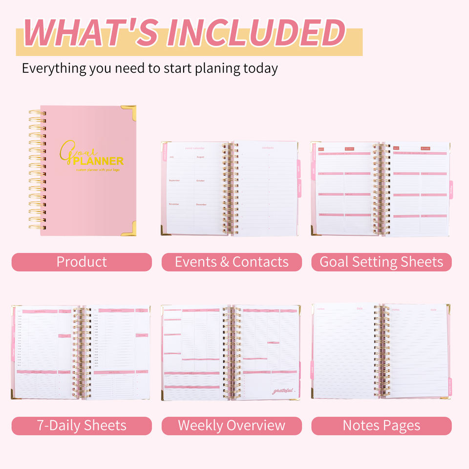สมุดวางแผนเป้าหมายสำหรับ2025ทองงานพิมพ์รายสัปดาห์ของขวัญสำหรับเด็กผู้หญิง