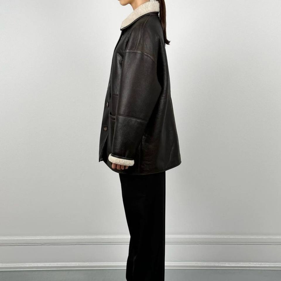 แจ็กเก็ตหนังยาวสำหรับเด็กผู้หญิงพร้อมกระดุมด้านในและด้านในบุด้วยขนสัตว์เพื่อความอบอุ่นเหมาะสำหรับใส่ในออฟฟิศเก๋ไก๋