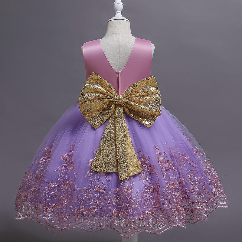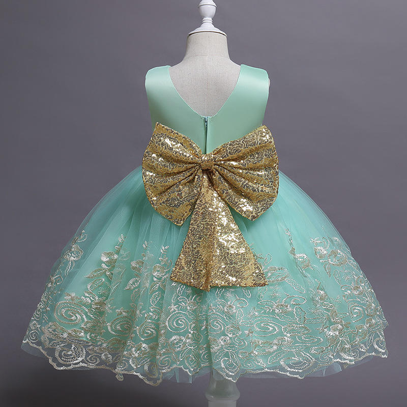 ชุดเดรสงานแต่งงานสำหรับเด็กผู้หญิง ชุดราตรีเจ้าหญิง แขนกุด ผ้าลูกไม้ปักลาย กระโปรงระบาย พร้อมที่คาดผม