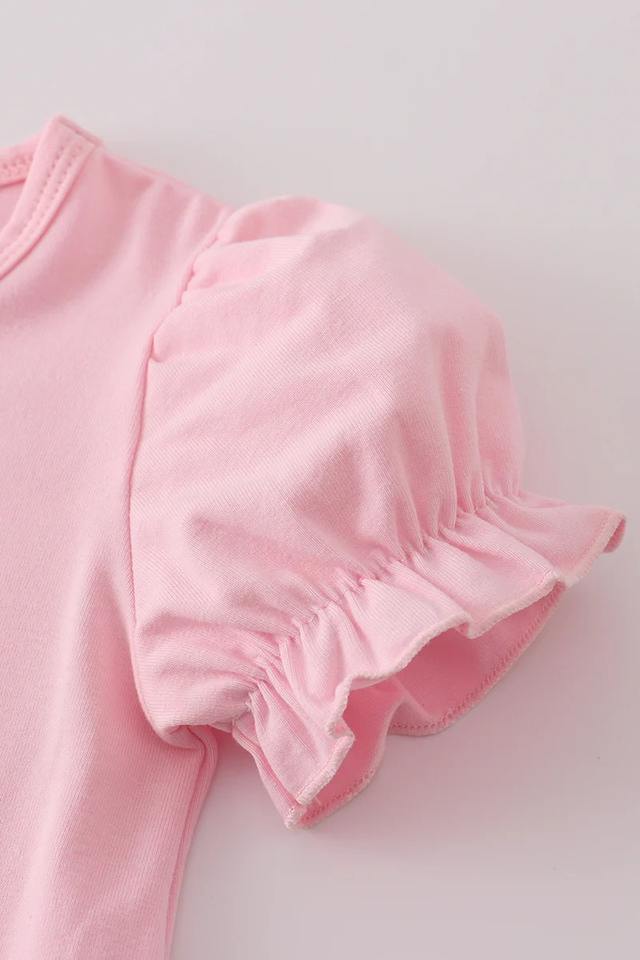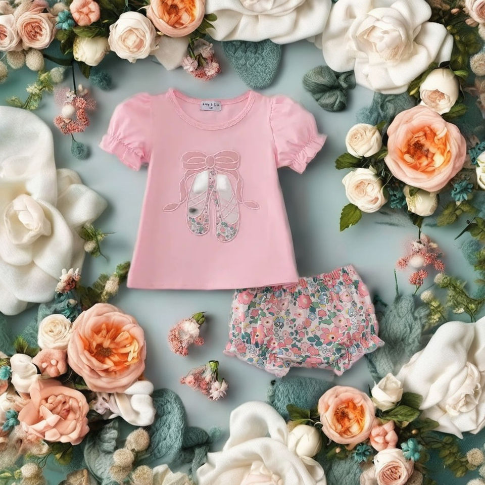 ชุดกระโปรงบัลเล่ต์สีชมพูสำหรับเด็กผู้หญิงเสื้อผ้าสองชิ้นใส่สบายสำหรับงานเต้นรำเล่นของโรงเรียนหรือสวมใส่ในชีวิตประจำวัน