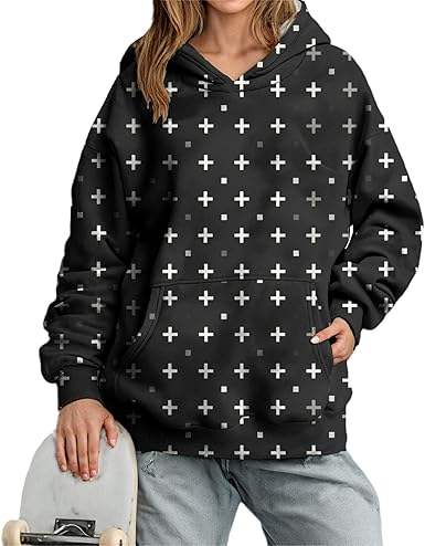 เสื้อฮู้ดลายกราฟิกสีชมพูสำหรับเด็กผู้หญิง สไตล์น่ารัก Y2K เสื้อสเวตเชิ้ตแบบสวม แฟชั่นลำลองสำหรับเด็ก มีกระเป๋า