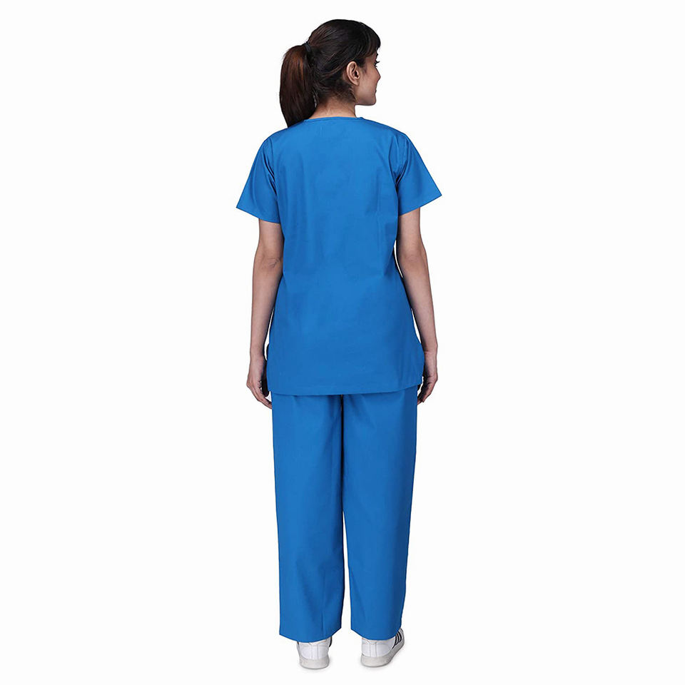 ชุดสครับสำหรับเด็กผู้หญิงชุดเครื่องแบบพยาบาลแบบยั่งยืนสีฟ้าใส่สบายสำหรับห้องแล็บทรีทเมนท์ผลิตในปากีสถาน