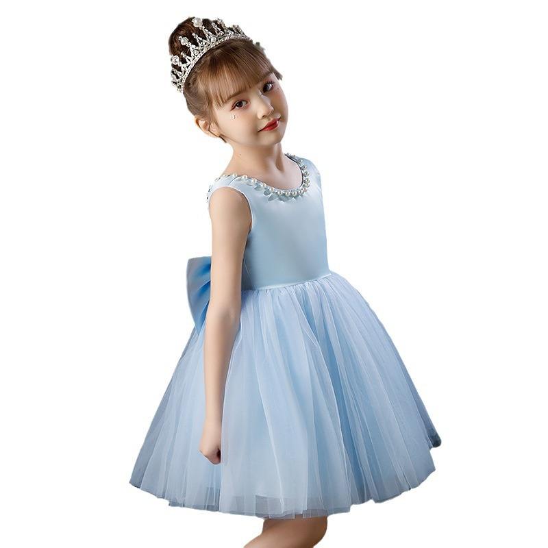 ชุดเด็กผู้หญิงสำหรับงานแต่งงาน งานวันเกิด อายุ 14 ปี กระโปรงฟูฟ่องผ้าทูลล์ ประดับลูกปัดลายจุด โพลีเอสเตอร์ ODM
