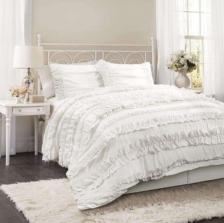 ชุดเครื่องนอนสไตล์เจ้าหญิงสำหรับเด็กผู้หญิง สีขาว ชมพู เทา พร้อมผ้าคลุมเตียงลูกไม้ ปลอกผ้านวม ผ้าคลุมเตียงแบบมีระบาย คุณภาพดี ขนาดคิงไซส์ ลายดอกบัว สำหรับใช้ในบ้าน