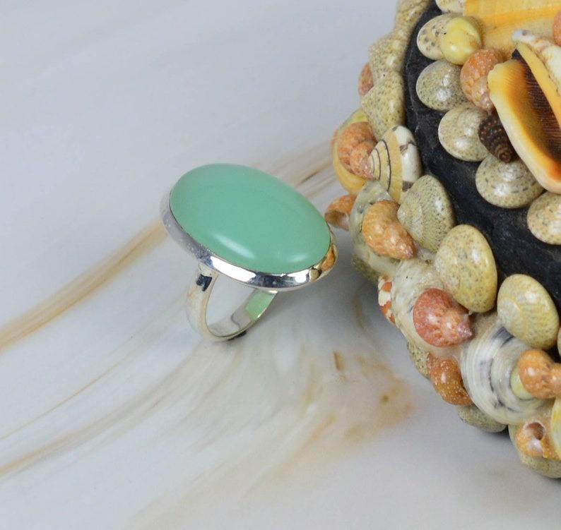 แหวนพลอย925หญิงแหวนเงินสเตอร์ลิงหรูหราแหวนพลอยคาลซิโดนีทำด้วยมือเครื่องประดับ925แสตมป์เงินสเตอร์ลิง