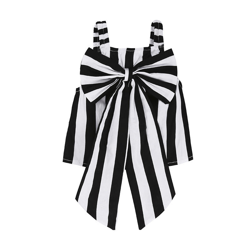 ชุดเด็กผู้หญิง เสื้อโบว์ใหญ่ กางเกงยีนส์ขาดสีขาว 2 ชิ้น ชุดฤดูร้อนลายทาง กางเกงแฟชั่นริบบิ้น เสื้อผ้าเด็ก