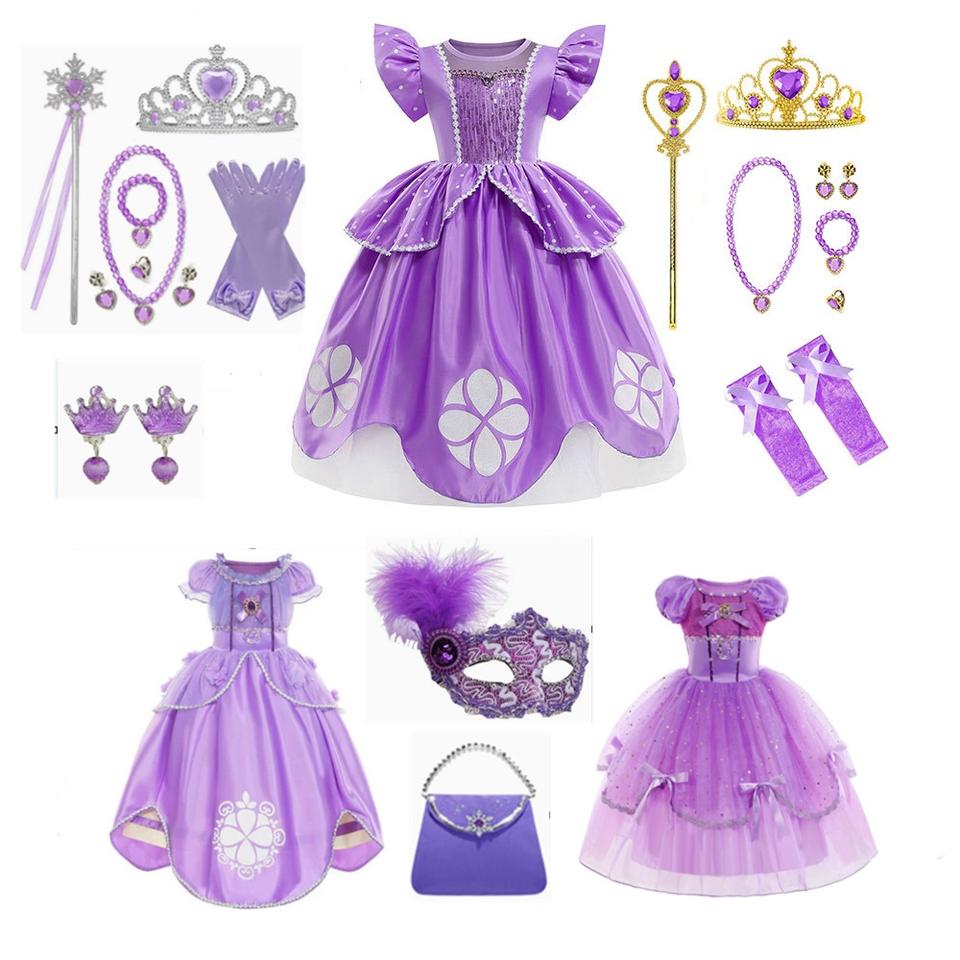 ชุดเดรสเจ้าหญิงโซเฟียสีม่วงสำหรับเด็กผู้หญิง ชุดคอสตูมจากซีรีส์และภาพยนตร์