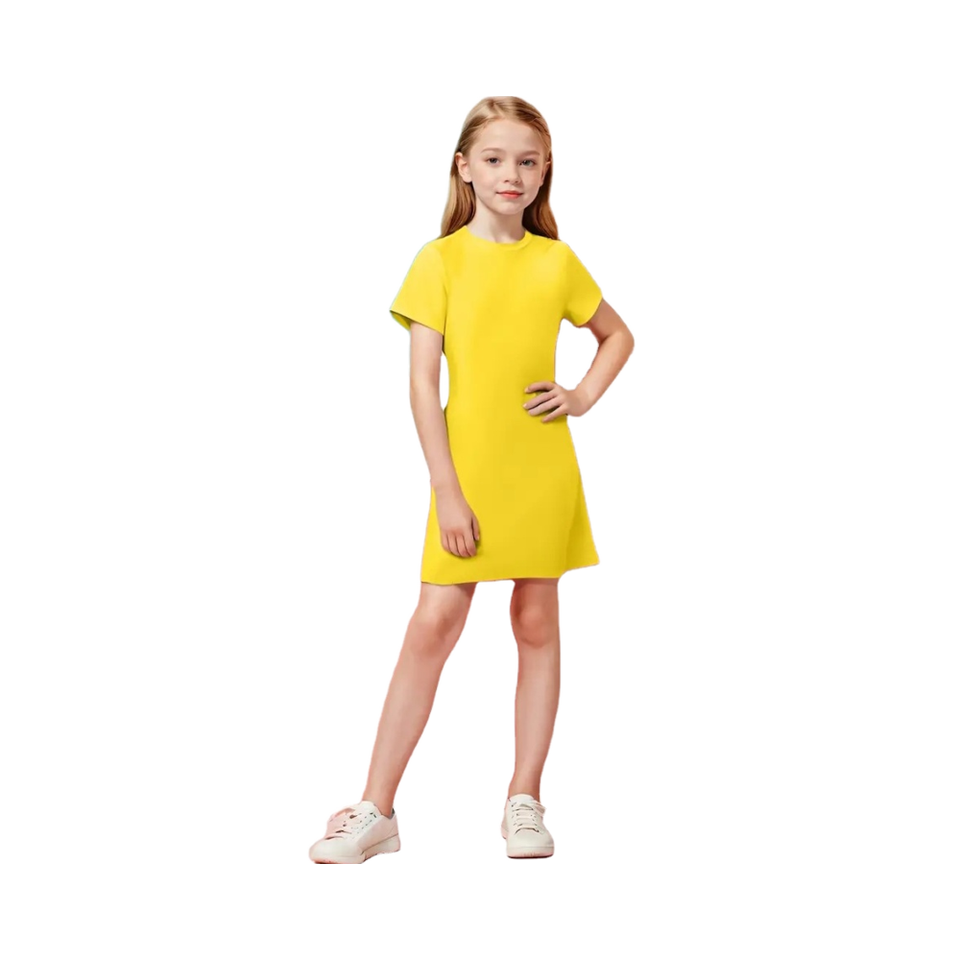 ชุดคอลเลกชั่น2025ฤดูร้อนของเด็กผู้หญิงชุดเดรสคอกลมแขนสั้นผ้าคอตตอนระบายอากาศได้ดีสีชมพูสดใสซักได้