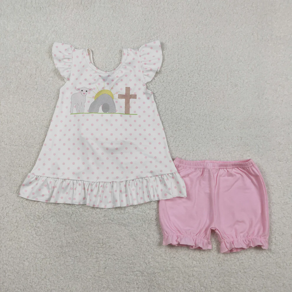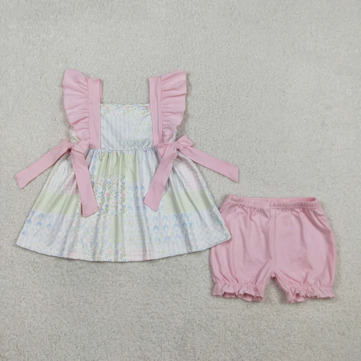 ชุดเสื้อผ้าฤดูร้อนสำหรับเด็กผู้หญิง เสื้อทูนิคลายดอกไม้แตงโม กางเกงขาสั้นระบายสีชมพู