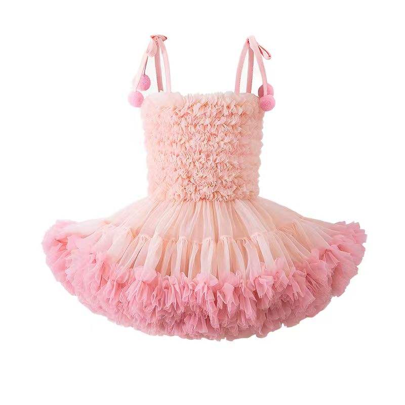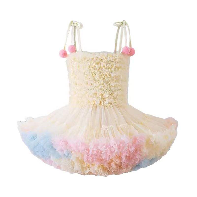 ชุดเดรสเจ้าหญิงผ้าโพลีเอสเตอร์ระบายอากาศสำหรับเด็กผู้หญิง สไตล์ลำลองสำหรับฤดูร้อน ดีไซน์ใหม่แบบฝรั่งเศส สายรัดแบบทูทู ผ้าตาข่ายไนลอน แฟชั่นสำหรับวันเด็ก
