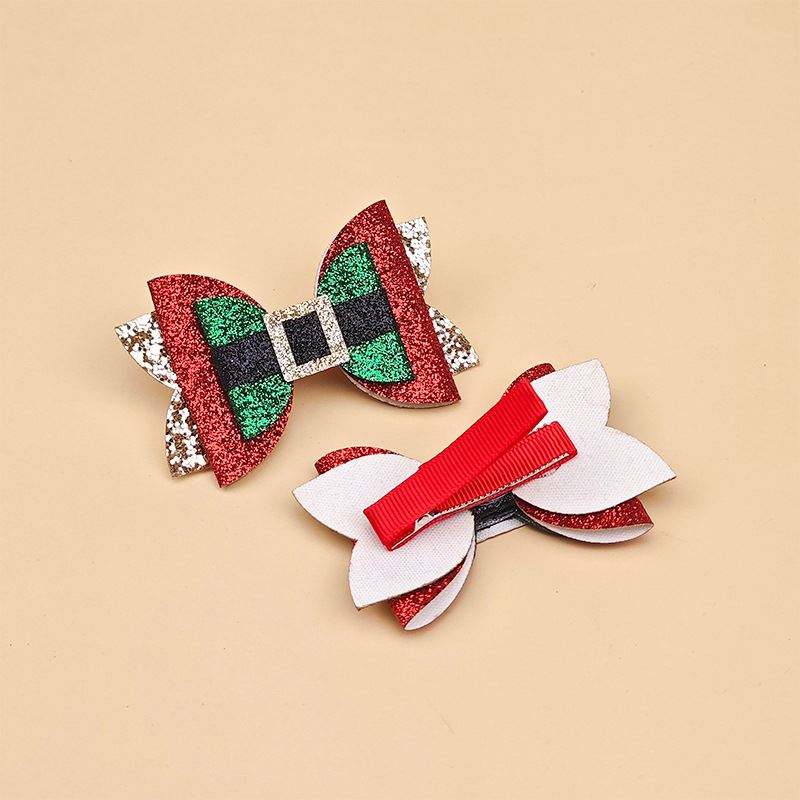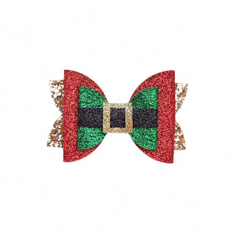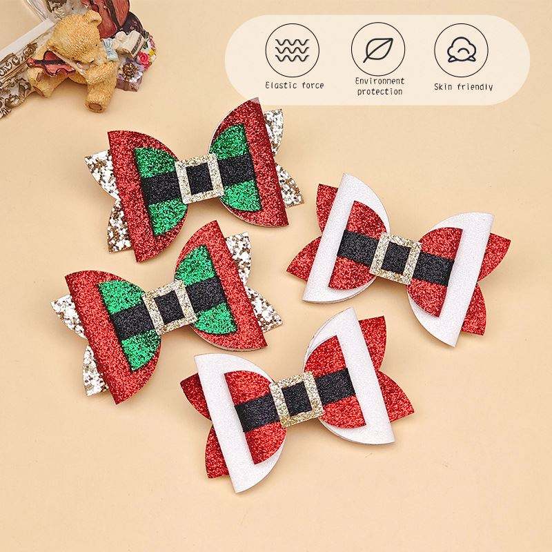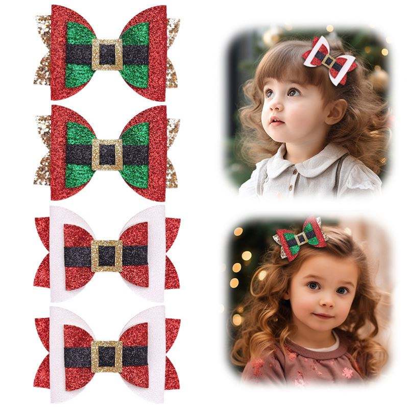 กิ๊บติดผมคริสต์มาสแสนหวานสำหรับเด็กผู้หญิงกิ๊บติดผมแต่งกลิตเตอร์หน้าม้ามีสีริบบิ้นติดด้านข้างสำหรับเด็กผู้หญิงตัวเล็กคลิปเต็มตัว