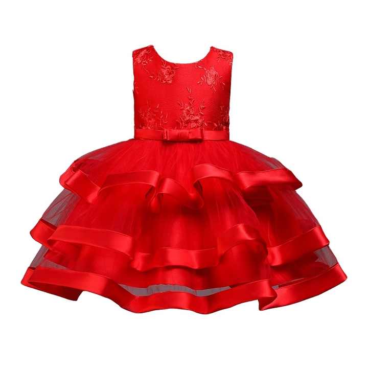 เดรสเจ้าหญิงสำหรับเด็กผู้หญิง ดีไซน์ลูกไม้พร้อมชายกระโปรงหลายชั้น