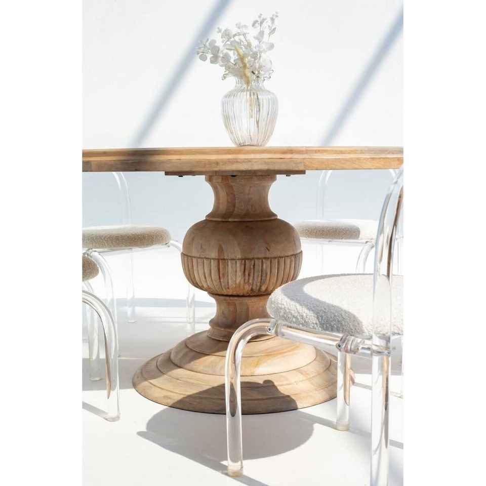 โต๊ะรับประทานอาหาร Giselle ไม้เนื้อแข็งพร้อมขานาฬิกาทรายเฟอร์นิเจอร์ห้องรับประทานอาหารไม้เนื้อแข็งสำหรับใช้ในบ้านหรือโรงแรม