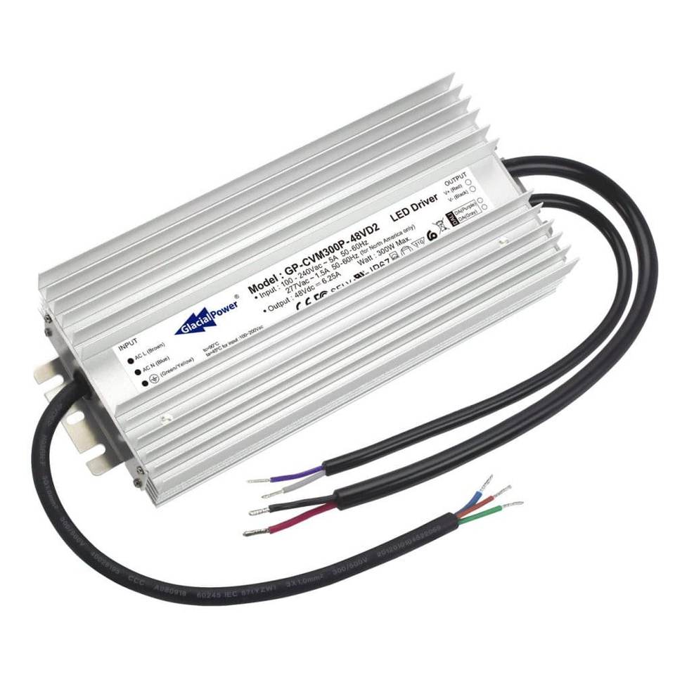 ตัวแปลงสัญญาณ AC DC แบบหรี่แสงได้ช่องเดียวตัวขับไฟ CV 300W 48V 6.25A DALI2ได้