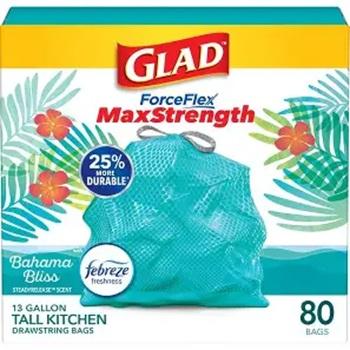 ถุงขยะสำหรับครัว Glad ForceFlex MaxStrength กลิ่นหอม ขนาดใหญ่ 13 แกลลอน รุ่น Bahama Bliss พร้อมกลิ่นหอมเฟบรีซ จำนวน 20 ถุง