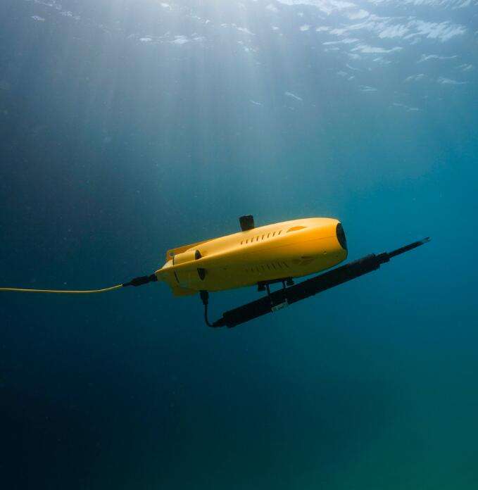 หุ่นยนต์โดรนใต้น้ำ Gladius MINI S ขนาดเล็กพร้อมกล้อง4K UHD ดำน้ำลึกถึง100เมตรเพื่อสำรวจโลกใต้น้ำอันงดงาม