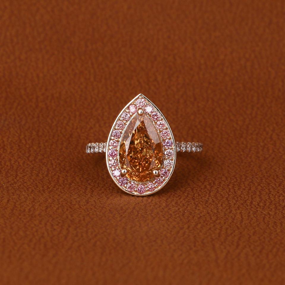 แหวนหมั้นเพชรสำหรับผู้ใหญ่สีชมพูสเตอร์ลิงสีทองและได้รับการรับรอง IGI