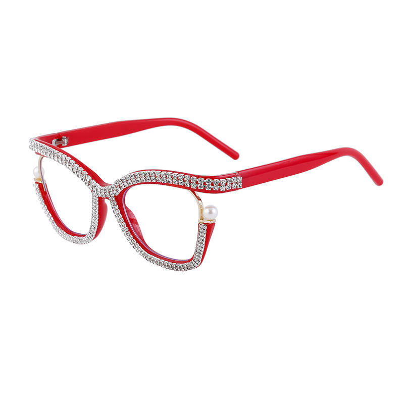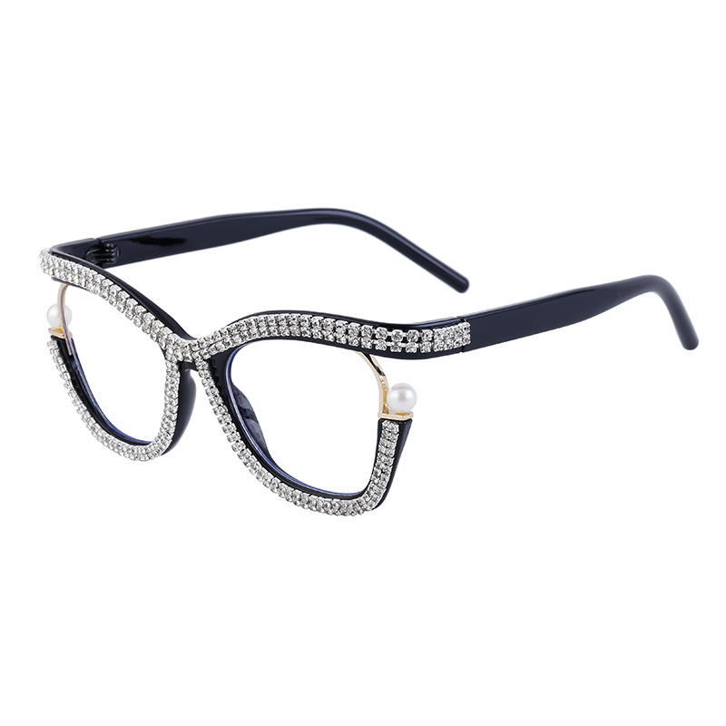 กรอบแว่นตาทรงแคทอายสุดหรูสำหรับผู้หญิง กรอบเต็มประดับด้วยคริสตัล ป้องกันรังสียูวี เลนส์พีซี ดีไซน์อเนกประสงค์