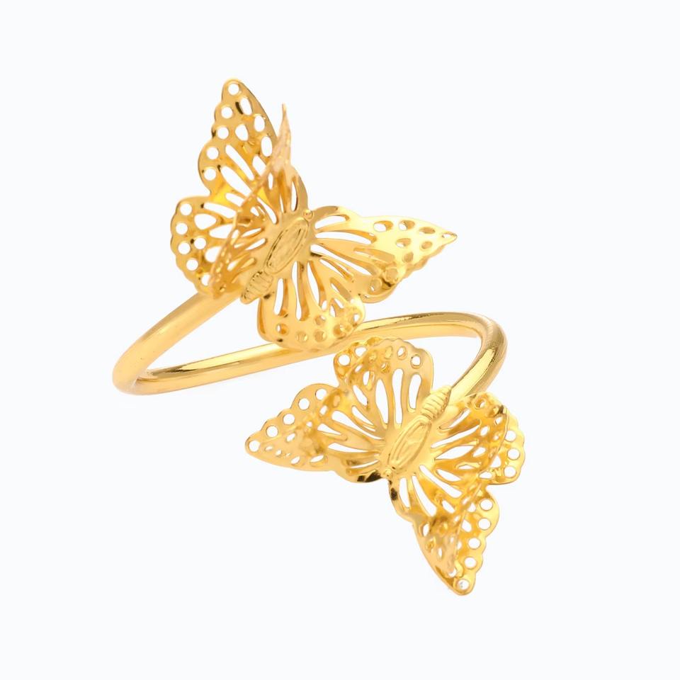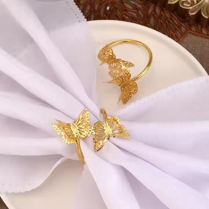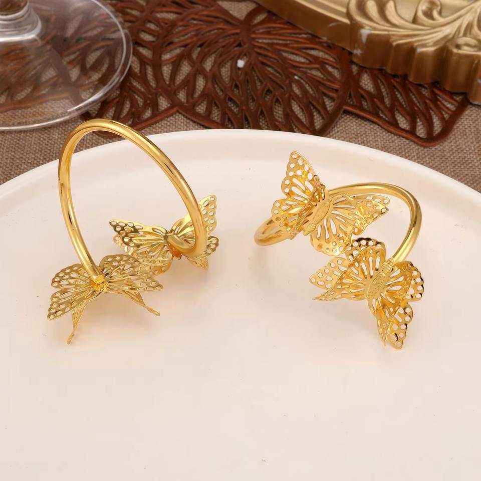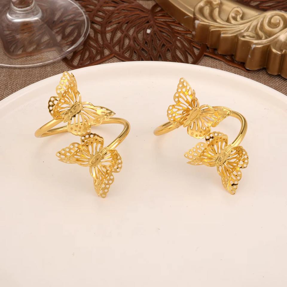 แหวนผ้าเช็ดปากรูปผีเสื้อสีทองหรูหราสำหรับการรับประทานอาหารตกแต่งงานแต่งงานโต๊ะปาร์ตี้ในโรงแรมการออกแบบที่สวยงามเน้นความโดดเด่น