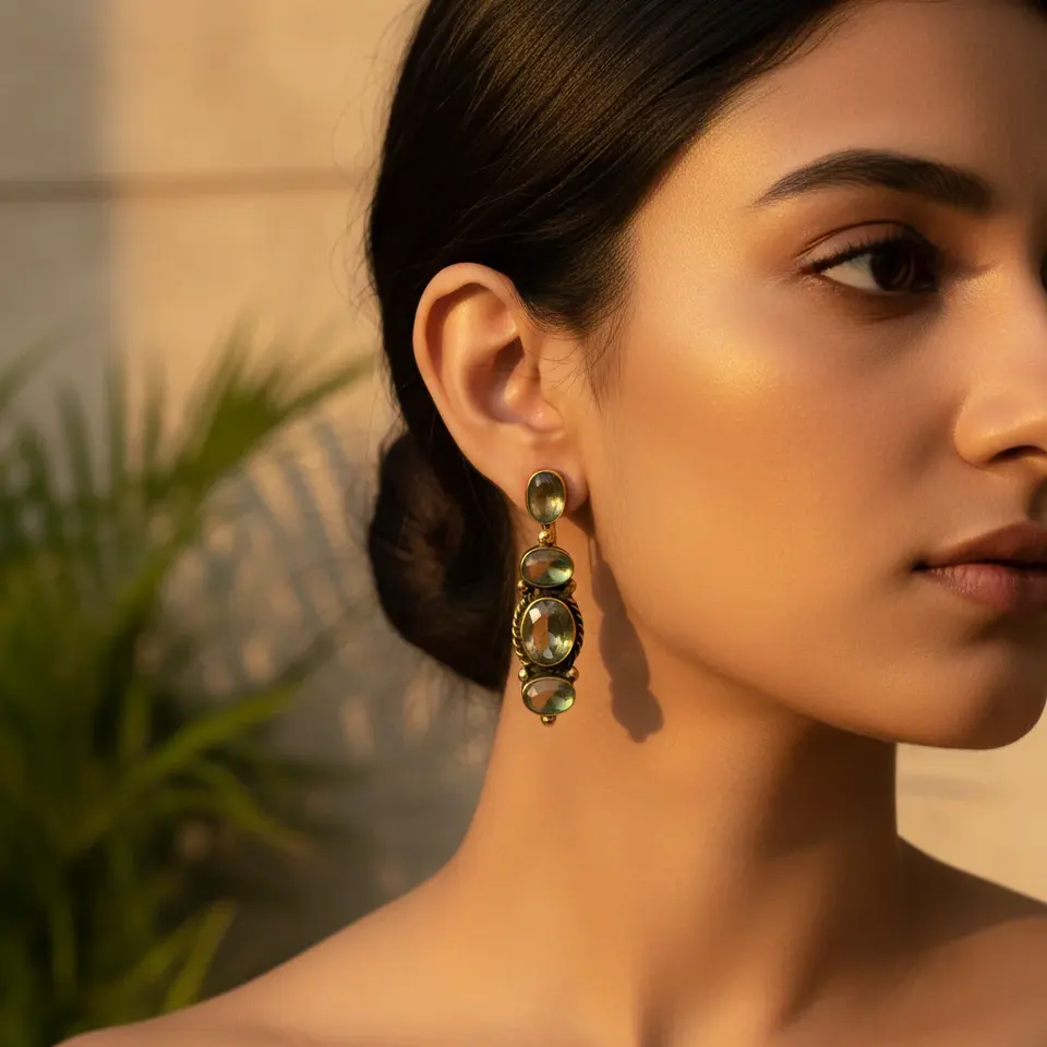 ต่างหูห้อยประดับด้วยหินสีเขียวทรงหยดน้ำ ดีไซน์หรูหรา สำหรับเครื่องประดับแฟชั่นสตรี