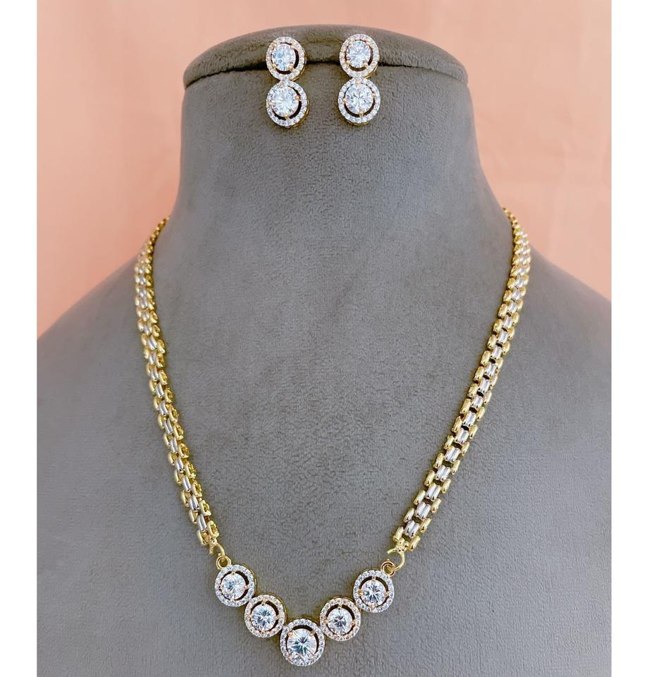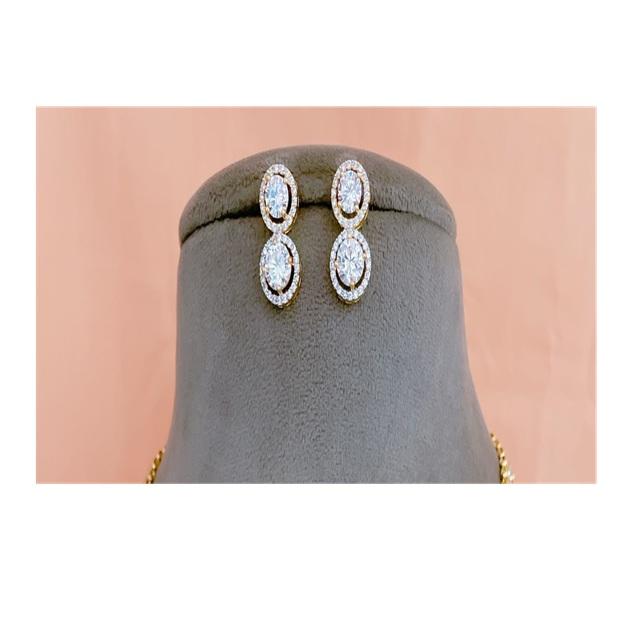 ชุดสร้อยคอทองเหลืองชุบทองประดับเพชรซิร์คอนคุณภาพพรีเมียม ดีไซน์หรูหรา พร้อมต่างหู เหมาะสำหรับงานแต่งงาน ของขวัญสำหรับผู้หญิง