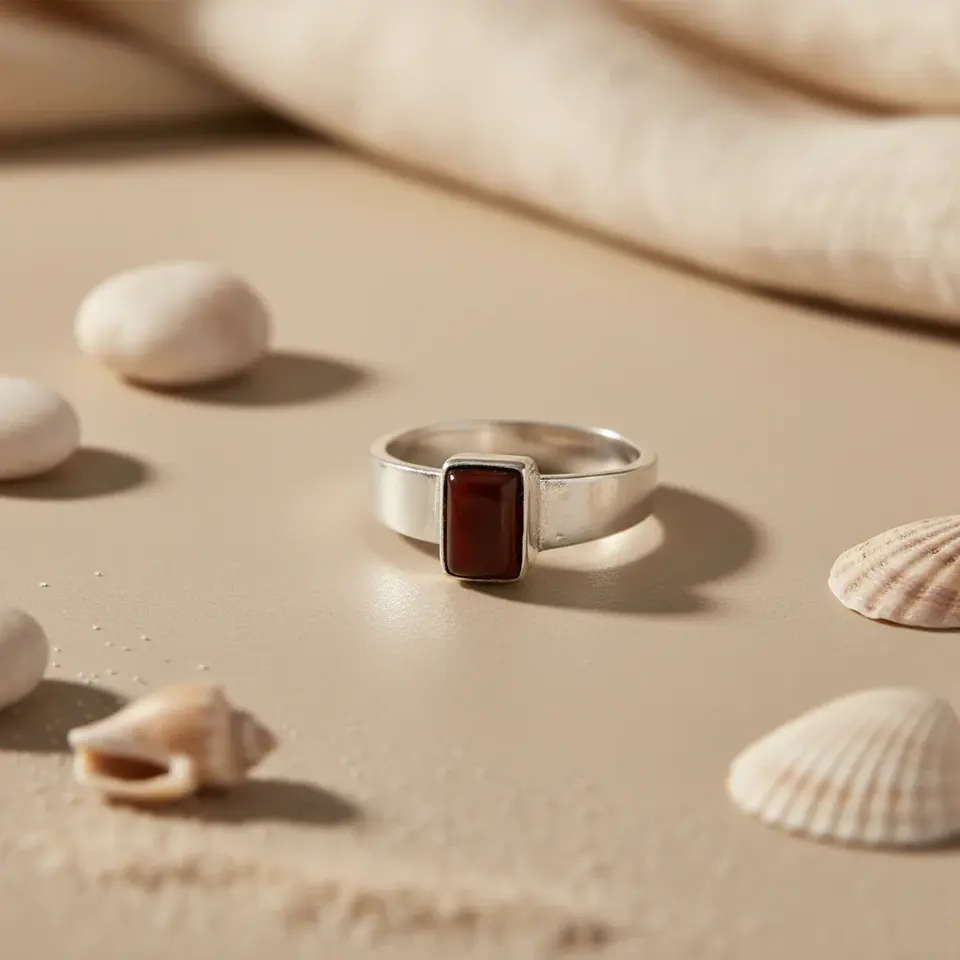 แหวนแฟชั่นผู้ชายประดับพลอยสีแดงสุดหรู - ชุบทอง 18K แหวนแฟชั่นมอยส์ซาไนต์