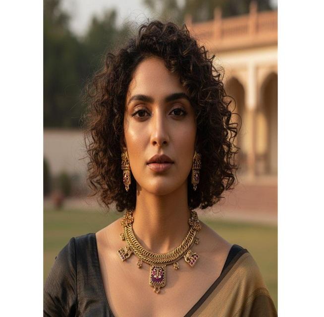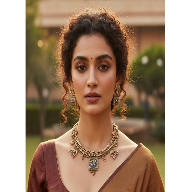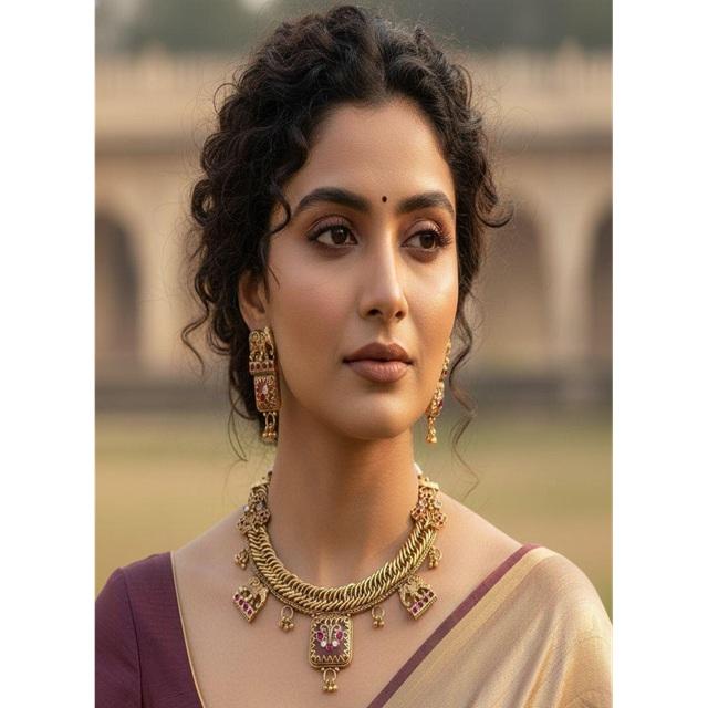 ชุดเครื่องประดับทองเหลืองชุบทองคุณภาพพรีเมียม ประดับด้วยเพชรคุณภาพสูง ดีไซน์แบบราชวัติ ประกอบด้วยสร้อยคอ ต่างหู และติกก้า เหมาะสำหรับเป็นของขวัญงานแต่งงานสำหรับผู้หญิง
